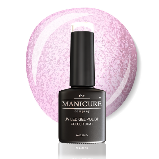 The Manicure CompanyProduct Description Champagne Dreams gel nail polish is a unique, beautiful light, shell pink full of rainbow reflective glitter. it's drama but s...
